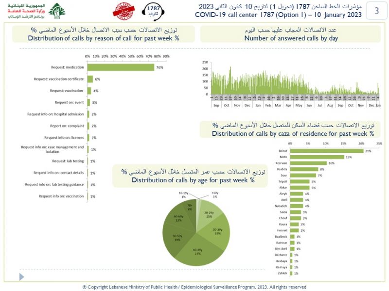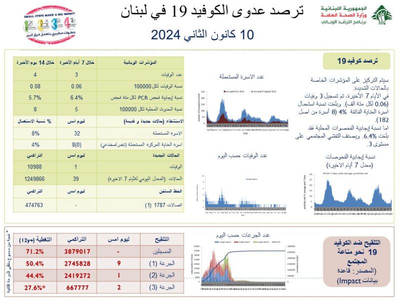 ترصد عدوى الكوفيد 19 في لبنان بتاريخ 10/1/2024
