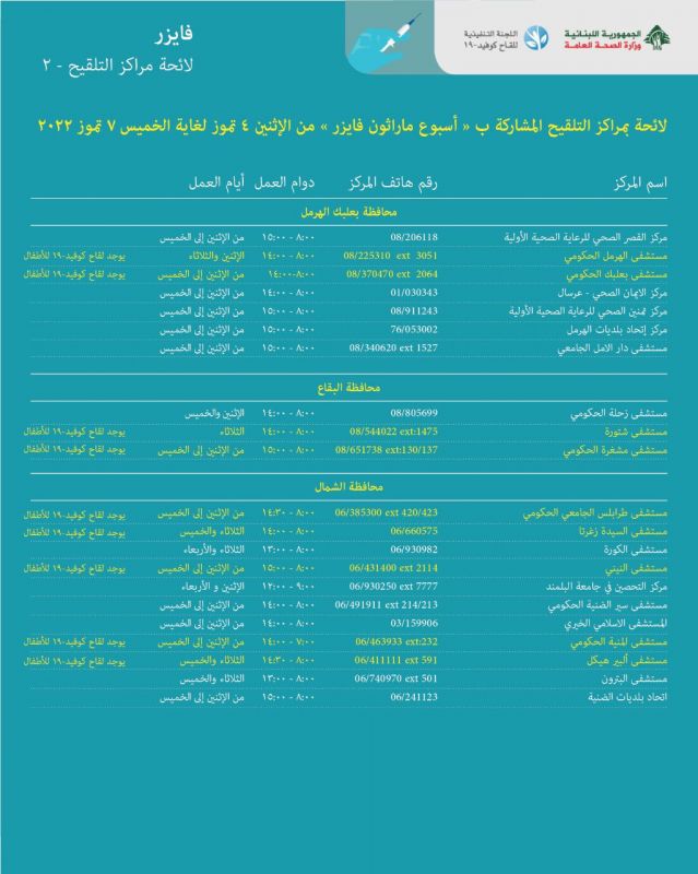 التسجيل لأخذ لقاح الكورونا covax.moph.gov.lb