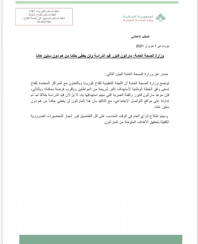 صدر عن وزارة الصحة العامة البيان االتالي: