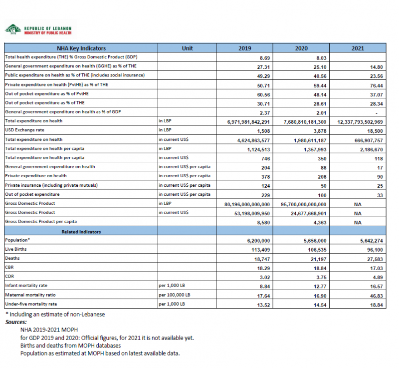 الحسابات الصحية الوطنية 2019 و2020 و2021
