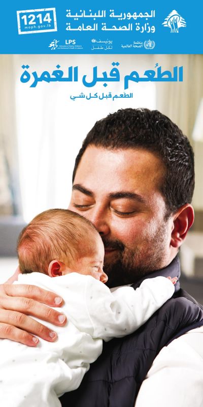 برعاية رئيس مجلس الوزراء سعد الحريري ممثلا بوزير الثقافة غطاس خوري، أطلق نائب رئيس مجلس الوزراء وزير الصحة العامة غسان حاصباني الحملة الإعلانية للبرنامج الوطني للتحصين في السراي الكبير تحت عنوان "الطعم قبل كل شي" بهدف التشديد على أهمية اللقاح لحماية الأطفال من الأمراض التي يمكن توقيها باللقاح، خصوصا أن وزارة الصحة العامة توفر اللقاحات الأساسية مجانًا لجميع الأطفال (من عمر صفر حتى 18 سنة) في كافة المراكز الصحية والمستوصفات التي تنتشر في مختلف المناطق اللبنانية، علمًا أن اللقاحات الموجودة مضمونة الجودة وتتبع لمعايير منظمة الصحة العالمية. (للمزيد...)