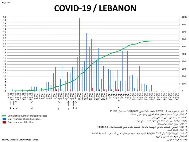 Cumulative number of COVID-19 positive cases-20/4/2020                                      COVID-19-Lebanon-20/4/2020