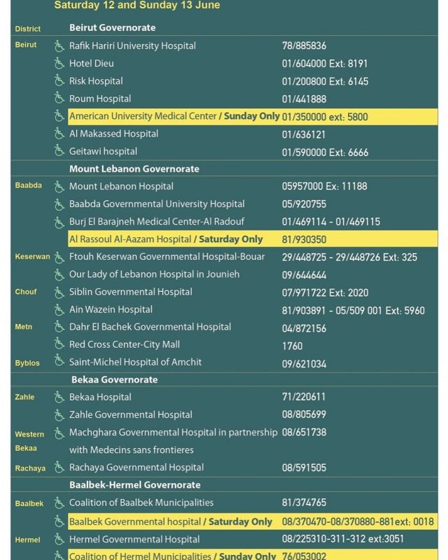 وفي ما يلي مراكز التلقيح في المناطق اللبنانية كافة: