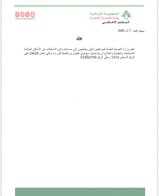 Hotline for Health Services for Displaced Lebanese